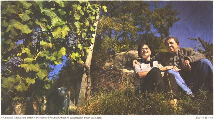 Helmut und Angela Zaiß sitzen nur selten so gemütlich zwischen den Reben in ihrem Weinberg. Foto Heinz Heiss