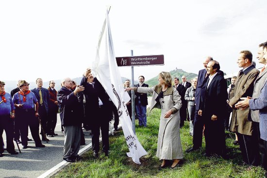 Die Württemberger Weinstraße sei das "rot-weiße Band für vielfältige Erlebnisse in einer Landschaft mit viel Freizeitwert", sagte Hohl: "Hier haben sich Dichter und Denker versammelt und bei einem guten Glas Württemberger Geistesgeschichte geschrieben. Hier kann man Burgen und Schlösser, Kunstschätze und andere Sehenswürdigkeiten, interessante Städte und freundliche Dörfer erleben, herausragende Gastronomie genießen und moderne Betriebe kennen lernen." Der Weinbauverbands-Präsident und Regierungsvizepräsident Dr. Horst Rapp riefen Gemeinden, Weinwirtschaft, Gastronomie, Hotellerie und Veranstalter auf, an der Weinstraße gemeinsam Aktivitäten zu entwickeln. Rapp: "Die Straße muss ständig ins Bewusstsein gerückt werden." Sie dürfe kein Dornröschen-Dasein führen. Hohl: "Tourismuswege bringen wirtschaftliche Effekte für Regionen, Betriebe und den gesamten Freizeitmarkt." Für den Fremdenverkehr im Land bezeichnete Klaus Lindemann als Geschäftsführer der Regio Stuttgart Marketing- und Tourismus-GmbH Wein und Tourismus als "gelungene Verbindung".