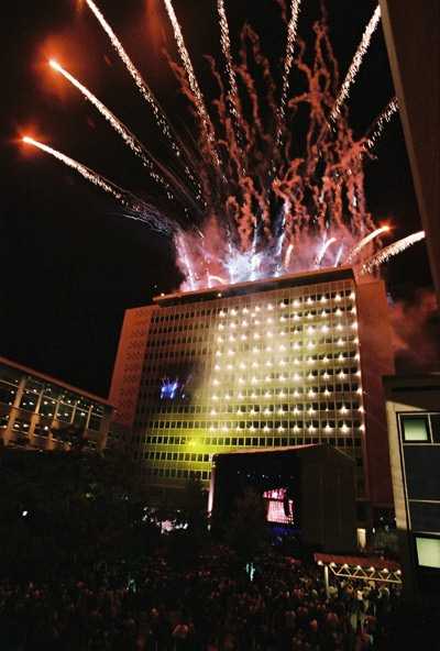 Ein Höhepunkt war das Feuerwerk am Verwaltungshochhaus - Foto: DaimlerChrysler