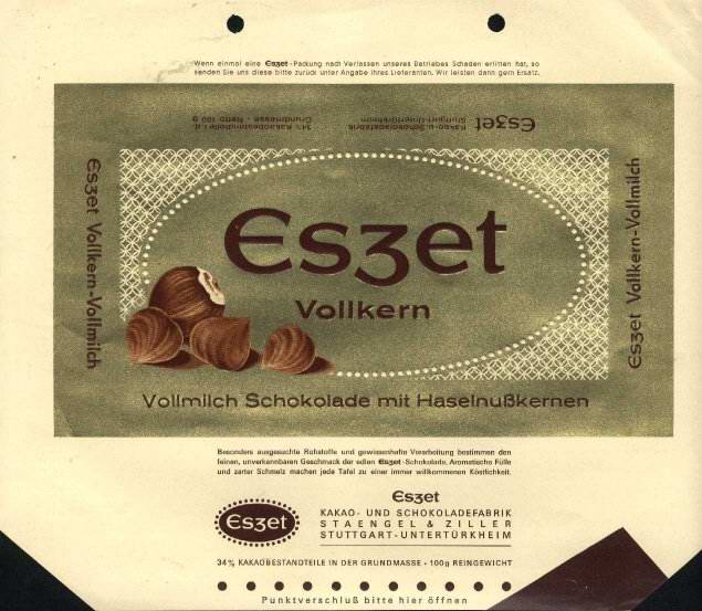 bildeten den Markennamen Eszet. In Stuttgart wird heute keine Schokolade