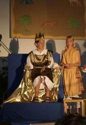 Wer kennt sie nicht, die Geschichte von dem kleinen Hirtenjungen David, der von dem Propheten Samuel zum neuen König berufen wird. Und ein Musiker war er auch noch: schöne Lieder hat er getextet und gesungen und sich auch noch selber auf der Harfe begleitet! Ausgerechnet er tritt bei der großen Schlacht der Israeliten gegen die Philister dem Riesen Goliath entgegen - nur mit einer Steinschleuder bewaffnet! Doch mehr sei an dieser Stelle nicht verraten. Denn schließlich stehen die Musical-Aufführungen des Untertürkheimer Kinderchores unmittelbar bevor.