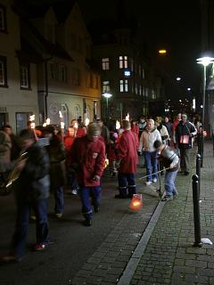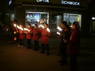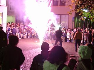 Gang mit dem Musikverein Ut. und der Jugendfeuerwehr durch den Ortskern. Am Storchenbrunnen Abschluß mit Bodenfeuerwerk und Fackeljonglage.