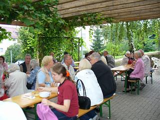 Weinlaube für Familienfeste gemietet werden; zusammen mit dem Gemeindesaal