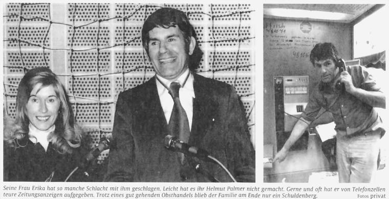 Die Schattenseiten seines ruhelosen Lebens scheint Helmut Palmer zu verdrängen. Man hat den Eindruck, dass er sich einen gewaltigen Panzer um die Seele gezimmert hat, der es ihm ermöglicht, die familiären Dinge verklärt zu sehen. Bis heute an seiner Seite ist die Frau mit Mädchennamen Erika Kröner aus Göppingen, die Palmer im Jahr 1969 geheiratet hat. Vor der Trauung hatte er ihr vor Zeugen versprochen, sich auf sein Geschäft zu konzentrieren und die Finger von der Politik zu lassen. Das Versprechen hat nicht gehalten. Aber die "Eri", wie er sie in Briefen nannte, ist trotz aller Widrigkeiten geblieben. Man darf ihr getrost eine "Saukuttel" bescheinigen, die auch ihrem Mann nachgesagt wird. Was sie an seiner Seite durchgemacht hat, reicht für zwei Leben. Nachwort Palmer, der Vorbestrafte, hat sich auf seiner rastlosen Wanderung durch das Leben nie für den Weg des geringsten Widerstands entschieden, als Pomologe nicht und auch nicht als Wahlkämpfer. Palmer hätte es weit bringen können, wenn er die Finger von der Politik gelassen hätte. Aber im politischen Leben wäre eine Lücke entstanden. Seit 1996 leidet er an Krebs. So wie man Helmut Palmer kennt, wird er bis zum letzten Schnapper gegen alles kämpfen, was ihm verkehrt auf dieser Welt erscheint. Er will ein geachtetes Mitglied dieser Gesellschaft sein, für die