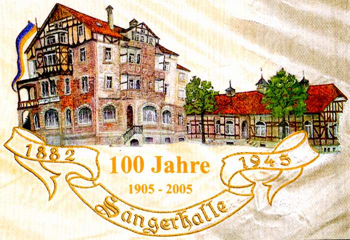 Motiv von 1945 auf der Tasche zum 100-jährigen Jubiläum der Sängerhalle