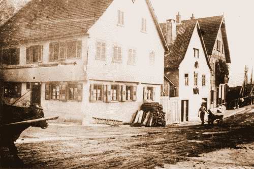 383 Das um 1770 erbaute Gebäude beherbergte bis 1816 die Gemeinde- und Amtskanzlei des amtierenden Ortsvorstehers Georg Fr. Brodbeck. Die Geschichte der Amtsstuben" findet ihren Ursprung im Dreißigjährigen Krieg. 1634 fielen der Brandschatzung ein großer Teil der Häuser, unter anderem auch das hiesige Rathaus zum Opfer. Für den Bau eines neuen Amtshauses fehlten der Gemeinde jedoch die nötigen Mittel. Im Lande herrschte noch Krieg, die Einwohnerzahl war stark geschmolzen. Auf dem Wasen befand sich ein zu den umliegenden Orten gehörendes Schießhaus, das jedoch schon seit langer Zeit nicht mehr genutzt wurde. Dies veranlasste 1642 den hiesigen Magistrat, ein Gesuch an den Herzog zu richten, mit der Bitte, der Herzog möge gestatten, das Schießhaus abzubrechen und es im Flecken zu einem Rathaus aufzurichten". Die erbetene Erlaubnis wurde erteilt. Das Schützenhaus konnte im Ort neu aufgebaut werden und stand nun der Gemeinde als Amtshaus zur Verfügung. |