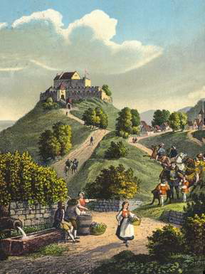 stand die ehemalige Stammburg Wirtemberg aus dem 11. Jahrhundert. "Eine Feste mit drei Ringmauern, umfangreichen Stallungen