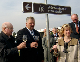 Präsident Hermann Hohl und die Württembergische Weinkönigin Christine Warth bei der Einweihung der Württemberger Weinstraße am 14.10.2004 in "Tripsdrill"