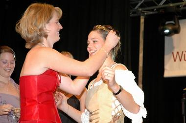Für Vorgängerin Christine Warth war die zwölfmonatige Regentschaft ein "einmaliges Jahr". Viel Freude hätten ihr vor allem Begegnungen mit Menschen gemacht, sagte sie bei ihrer Abschiedsvorstellung. Ihre Krönchen ab legten gestern auch die bisherigen Prinzessinnen Jasmin Kurz aus Talheim und Diana Trecsek aus Lauffen.