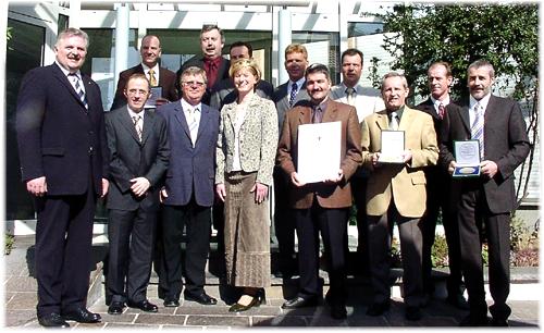 Kellermeister Jürgen Off und Weinmanufaktur-Vorstand Bernd Munk kennen sich bei Siegerehrungen mittlerweile bestens aus. Reichlich geehrt kehrten sie von der festlichen Bundesweinprämierung der Deutschen Landwirtschafts-Gesell-schaft (DLG) und des Deutschen Weininstituts zurück. 558 Betriebe traten mit 3707 Weinen im Kampf um die Medaillenränge in Deutschland gegeneinander an. Die angestellten Weine hatten sich in Lanprämierungen qualifiziert. So ist es nicht verwunderlich, dass Drei-viertel der Tröpfle eine Preismünze erhielt. Allerdings nur einem Prozent, genauer 40 der 3707 verkoste-ten Weine, bescheinigten die Experten aus Weinbau, Fachpresse und Gastronomie, dass sie zu den abso-luten Spitzenweinen in Deutschland gehören. Mit ihrem 2001er Spätburgunder Trocken aus dem Barrique-fass stieß die Weinmanufaktur in jene exklusive Phalanx der feinen "Top40"-Weine vor.
