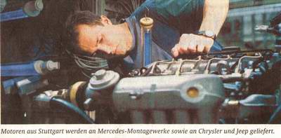 Erst kürzlich ist das V-Motorenwerk Bad Cannstatt erheblich erweitert worden. Aus- und umgebaut wurden vor kurzem auch das Getriebewerk in Hedelfingen, der Werksteil Zuffenhausen, die Gießerei in Esslingen-Mettingen. In Esslingen-Brühl entstand ein neues Lehrlingszentrum. Und um die wachsenden Warenströme zu den Werken in aller Welt bewältigen zu können, wurde gerade erst im Stuttgarter Hafen ein neues Versandzentrum eröffnet. Hauptabnehmer der Motoren, Getriebe, Vorder- und Hinterachsen sind die Mercedes-Pkw-Werke in Sindelfingen, Rastatt, Bremen, Tuscaloosa (USA) und East London (Südafrika). Untertürkheim produziert aber auch für Mercedes-Transporterwerke und Chrysler-Fabriken.