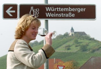 Sowohl Weinwirtschaft wie Gastronomie und Tourismus hatten Interesse an einer Wiederbelebung der Straße gezeigt. Weinbauverbands-Präsident Hermann Hohl: "Es ist wichtig, dass wir das Weinbaugebiet Württemberg noch besser bekannt machen." Die landschaftliche Schönheit und eine einmalige Vielfalt an Weinsorten vom herzhaften Trollinger über samtige Schwarzrieslinge, kraftvolle Lemberger und füllige Spätburgunder bis zu Riesling, Müller-Thurgau, Silvaner, Grauburgunder und Traminer bieten in Württemberg mit seinen 11386 Hektar Rebfläche das ideale Umfeld der Weinstraße. Parallel wird auch der Name des 1996 eingeweihten "Radweges Schwäbische Weinstraße" angepasst und die Strecke neu beschildert. Weinstraße, -wanderweg und -Radwanderweg werden künftig in einer Broschüre vorgestellt, die von der Regio Stuttgart Marketing erstellt und im Januar auf der CMT in Stuttgart präsentiert wird. (Foto: Bernd Weißbrod dpa/lsw 14.10.2004)
